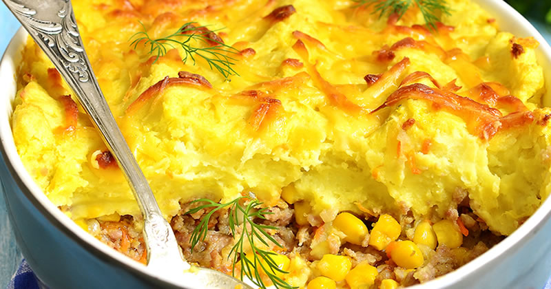 - Spread mashed potatoes over all, and bake in 350 oven until heated through.